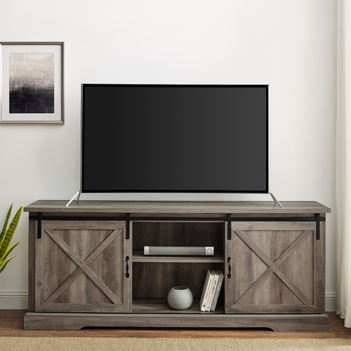 . Hideaway your books remotes DVDs and more behind the side cabinet. Add a modern farmhouse style to your space with this 70-inch Walker Edison TV stand console. 70 sliding barn door tv stand modern farmhouse large storage cabinet console for TVs up to 80 inches.