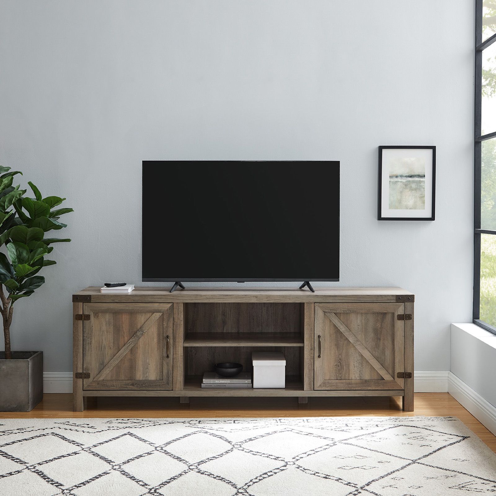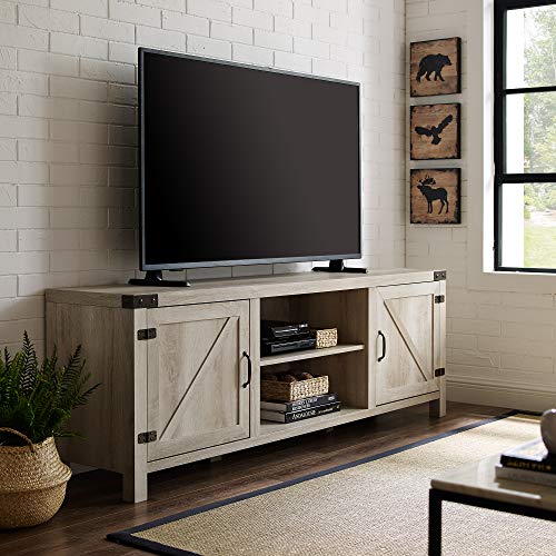 58 Farmhouse TV Stand With Barn Door Side Doors White Oak by Walker Edison 1170 266422. Shop Wayfair for all the best 80 inch TVs and larger Modern Farmhouse TV Stands Entertainment Centers. Rustic Solid Wood 83 Whitewashed TV Stand by Crafters and Weavers 5 1510.